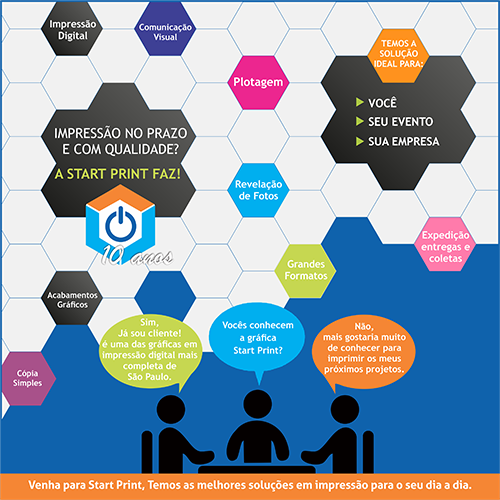 Na Start Print você encontra a solução ideal para você, sua empresa e seu evento. Venha conhecer nossa estrutura e as vantagens que oferecemos ao fornecer materiais com qualidade, rapidez e preços competitivos, ideal para o seu dia a dia.
